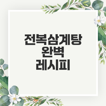 여름의 더위가 기승을 부리면 보양식으로 삼계탕이 제격입니다. 특히, 전복 삼계탕은 영양이 풍부하고 맛도 뛰어나 많은 이들에게 사랑받고 있습니다. 이번 포스트에서는 전복 삼계탕을 간편하게 끓이는 법을 단계별로 알아보겠습니다.