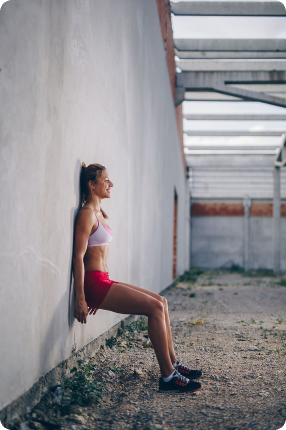 - 체중을 분산시키며, 등을 벽에 고정한 상태에서 무릎을 굽히거나 펴는 동작을 반복합니다.